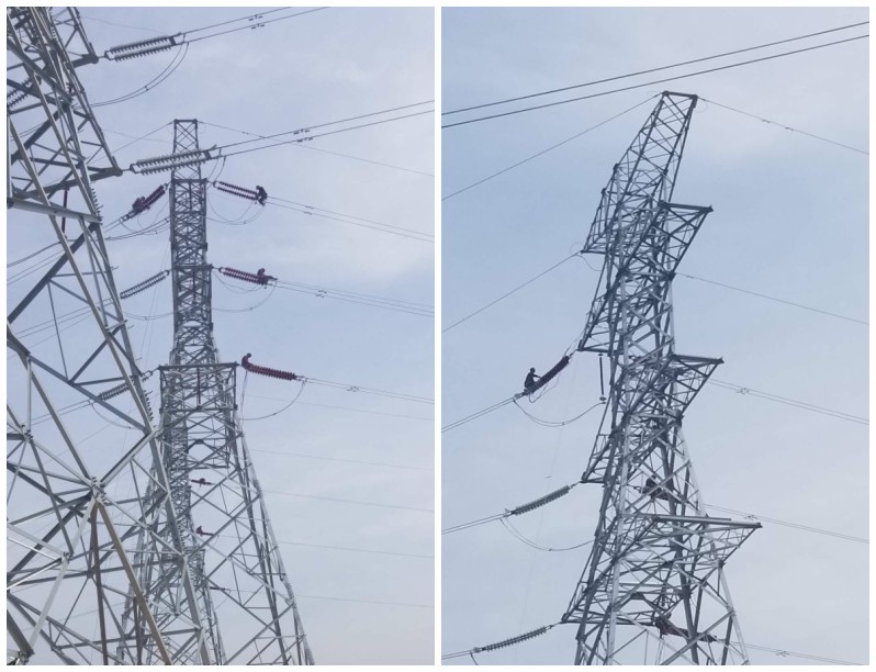 圖為三源建設(shè)工程有限公司施工技術(shù)人員在菏澤新建220kV輸電線路防污閃噴涂施工工地現(xiàn)場施工實況記錄